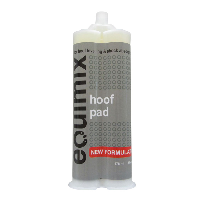 Hoof Pad Medium - EquimixD’une densité intermédiaire, ce produit plus dur que le Hoof Pad Comfort permet de nombreuses possibilités d’applications. Il conviendra notamment lorsque le pied du cheval nécessitera un réel support, tel que les chevaux de sport par exemple. Facile d’application et couleur transparente, il convient aux petits chevaux comme aux chevaux lourds. De par sa dureté supérieure, il peut être appliqué sans plaques, offrant légèreté et amortissement. Date de validité des produits : un an. Ouverture de la cartouche : Casser le téton d’étanchéité. Il n’est pas nécessaire de disposer d’un outil spécifique, la cartouche peut s’ouvrir à la main uniquement. Conservation de la cartouche ouverte et utilisée en partie : Couper la canule usagée en laissant une hauteur de 3 centimètres environ, le produit fera office de bouchon en séchant et pourra être réutilisé par la suite. Températures d’utilisation conseillées : entre 12°c et 30°c. En cas de température plus élevée, il est préférable de mettre la cartouche avec son emballage non percé dans l’eau froide pour faire redescendre la température. Dans le cas de température froide le protocole reste le même, placez la cartouche sans percer son emballage dans l’eau chaude. Les polymères EquiMix sont tous compatibles entre eux et offrent un large panel de possibilité en fonction des pathologies du cheval. | ||||||||||||||||||||||